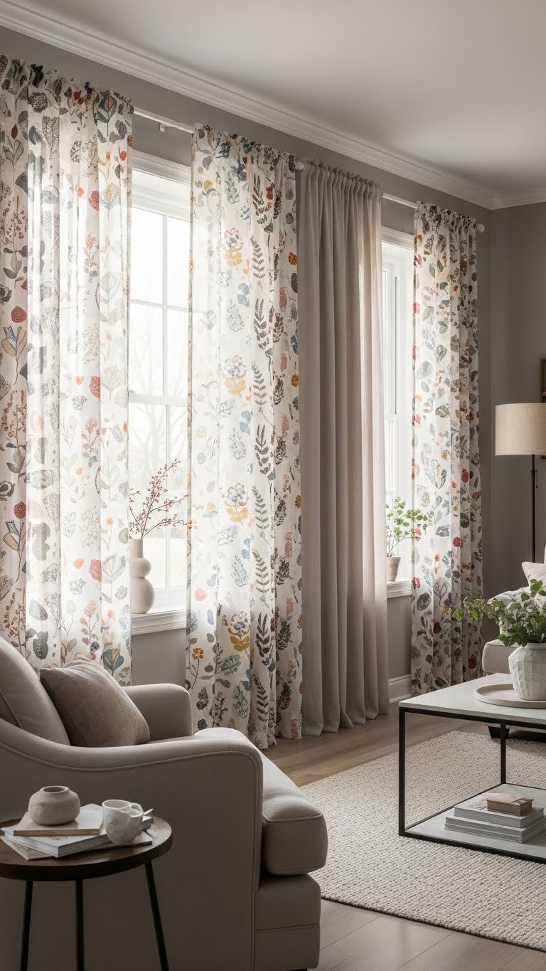 Choose breezy panels with thermal lining for winter coziness, or playful botanical prints to express freedom — mix neutral tones and relaxed drape for effortless, modern hygge.