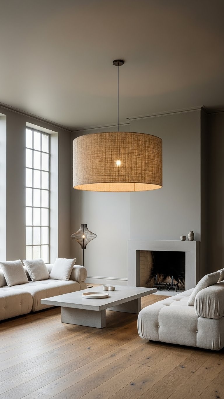 Anchor a room’s look by hanging an oversize pendant light fixture that balances scale and simplicity—choose a statement shade that complements your room’s proportions and the muted palette you’ve been using.