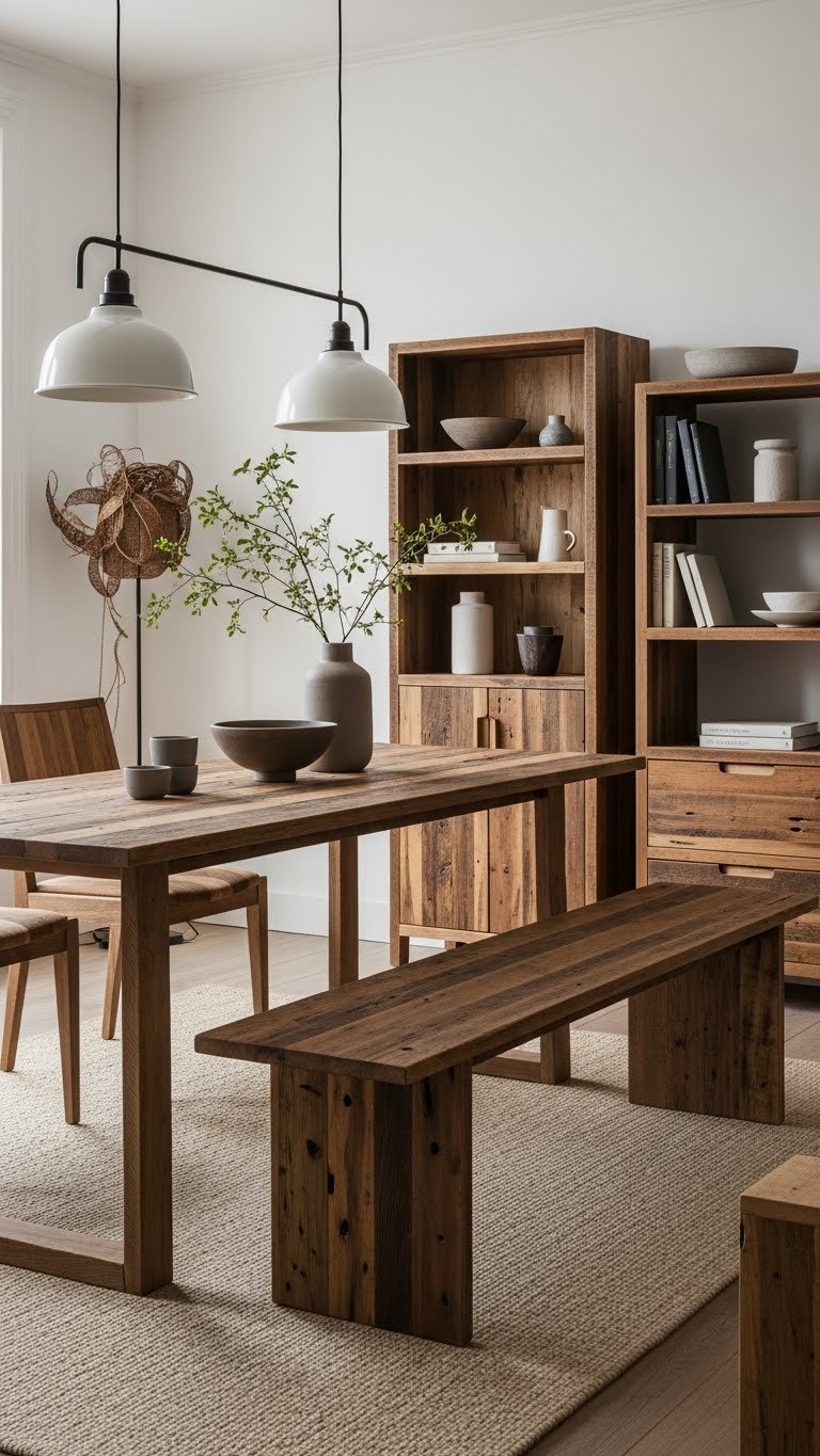 Choose reclaimed wood furniture to add warmth, character, and sustainability to your January refresh. You’ll embrace rustic charm while keeping interiors modern: upcycled timber tables, benches, and shelving bring patina and story.