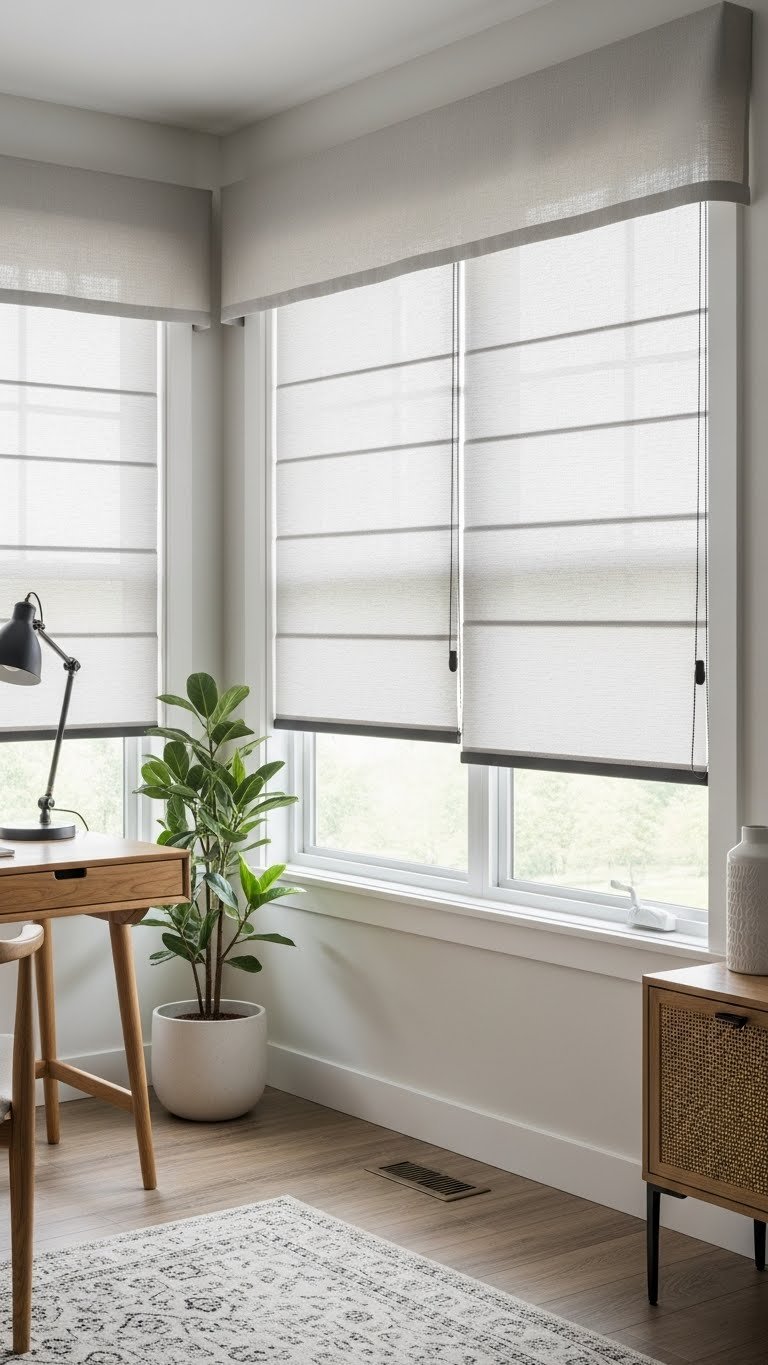 With layered, small-format window treatments you’ll get big impact without overwhelming a compact room. Pair mini valances with crisp stacked shades to control light and add sculptural detail. Choose lightweight linens and narrow profiles to keep sightlines open; mix matte hardware and muted tones for modern ease.