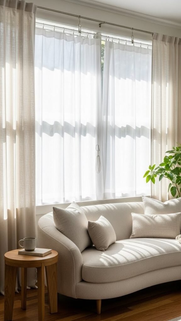 Layer linen layers with simple rods, tiebacks, or clips for easy movement. You’ll gain a relaxed, open feel that invites mornings and spontaneous afternoons.