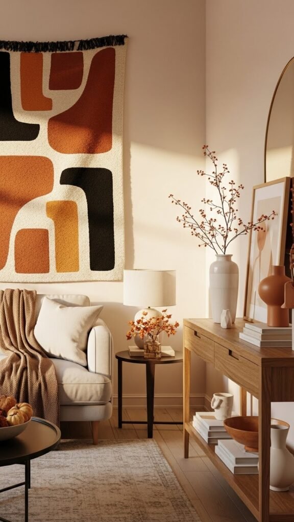 Rotate pieces seasonally, keep surrounding decor airy, and let the textile lead your layout.