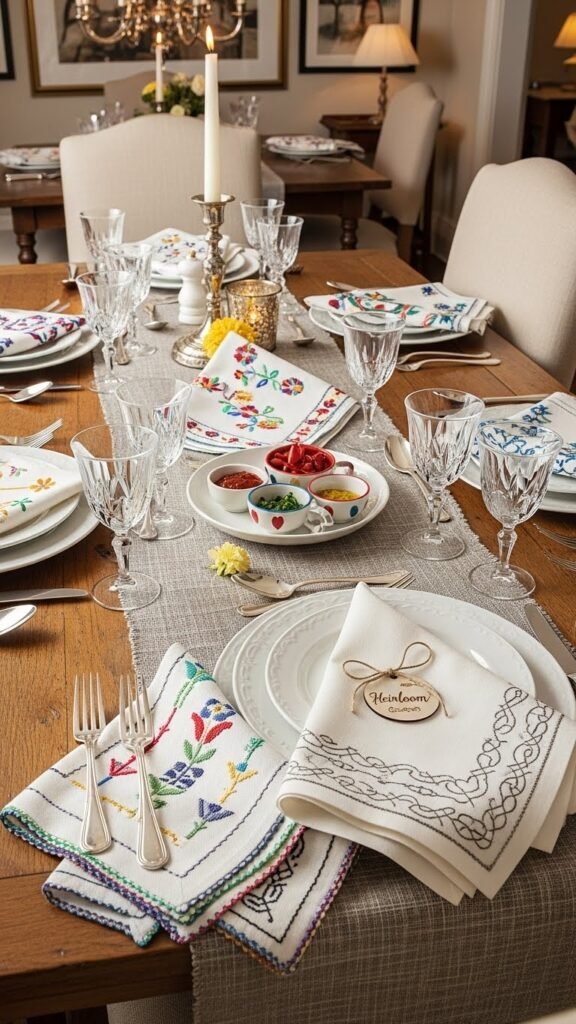 Stitch a bit of personality into your place setting with chain-stitch embroidered napkins that feel handmade and look polished. You’ll choose colors and motifs that reflect your mood, add hand stitched borders for texture, and mix casual with refined.