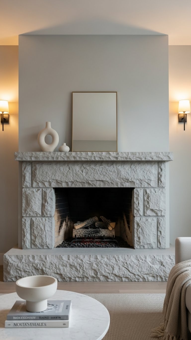 Keep mantel styling spare—one sculptural vase, a mirror, or curated art—so the texture speaks. Let clean lines and a muted palette amplify freedom, cozy glow, and purposeful simplicity without clutter.