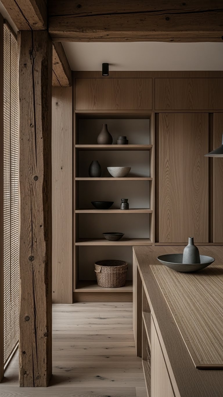 Choose matte finishes, simple silhouettes, and open layouts so wood breathes. Let surfaces age naturally; they’ll invite touch, calm your senses, and keep the space feeling free and uncluttered.
