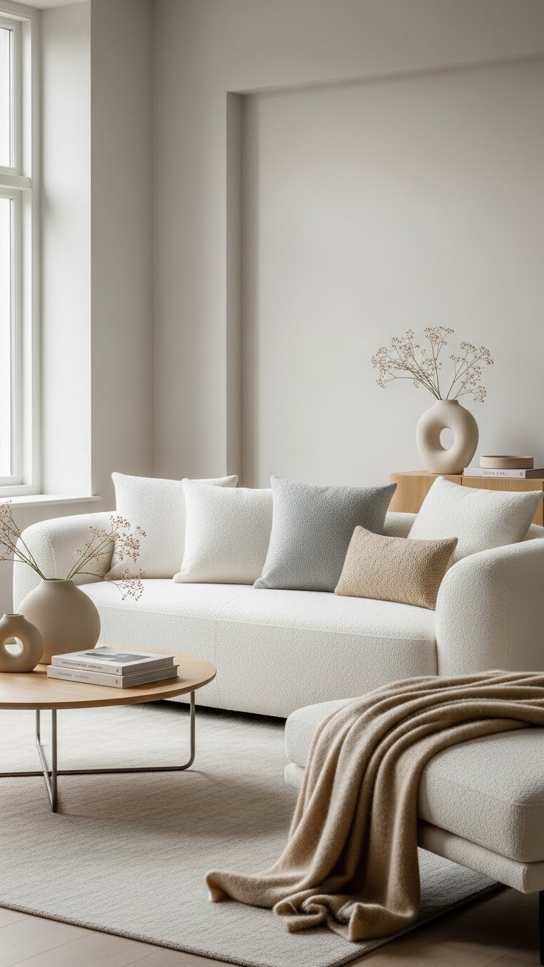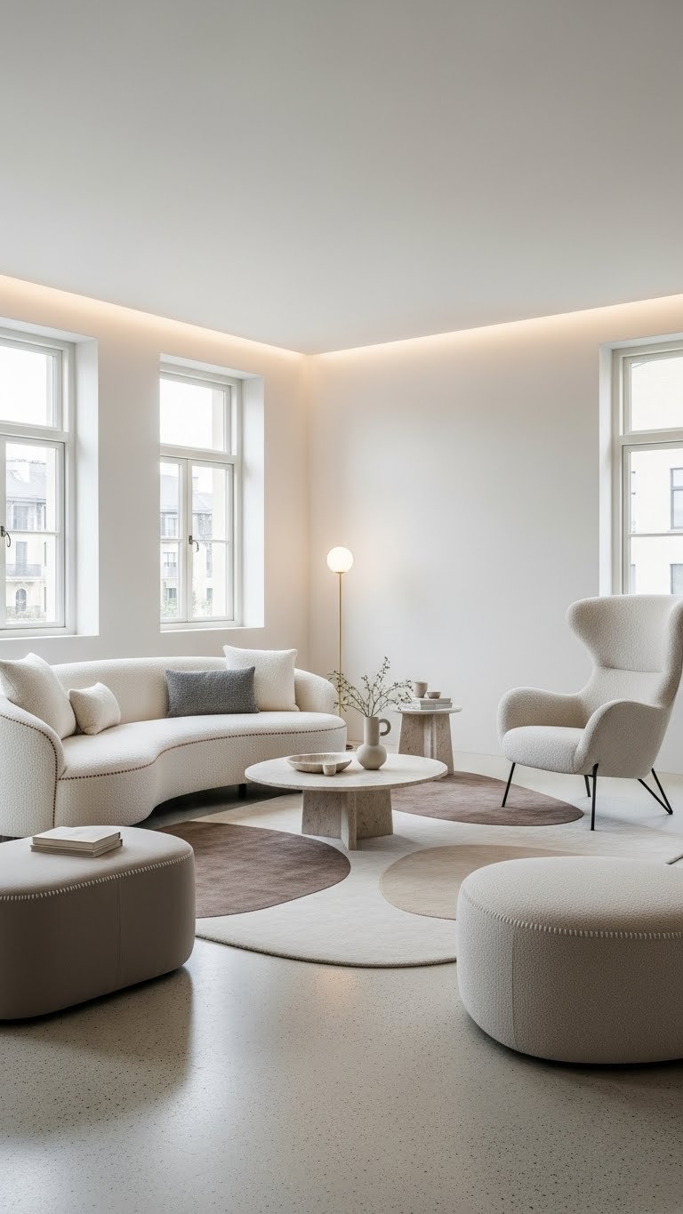 Introduce a curved sofa or sculptural chair to redefine flow and soften angles—its sweeping silhouette naturally creates intimate conversation pockets and anchors the room without feeling heavy.