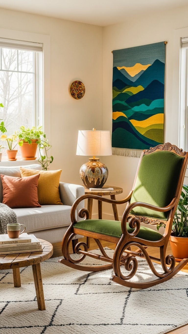 Bring in a single handcrafted piece and you’ll anchor the room with personality and provenance—think a sculpted rocking chair, a hand-thrown ceramic lamp, or a tapestry woven by a local artisan.
