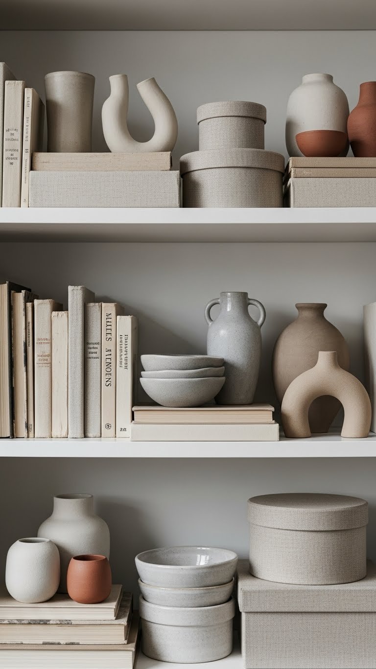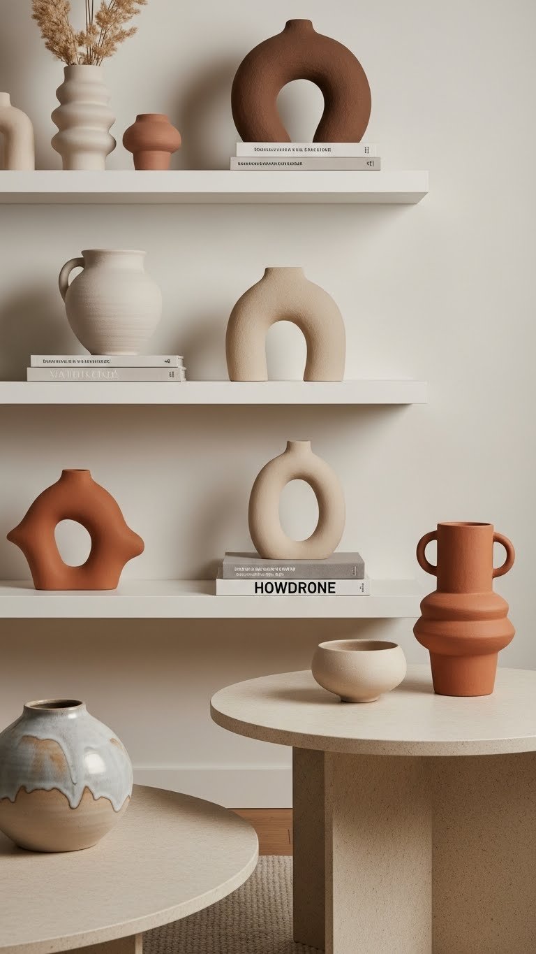 Sculptural ceramics blend form and function, giving your neutral scheme tactile focal points that read as art rather than mere accessories.