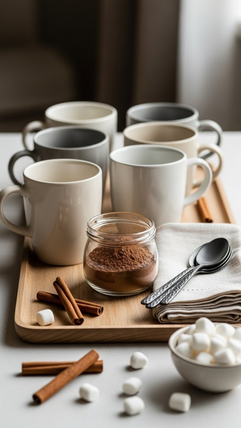 Simple Hot Chocolate Station With Neutral Mugs