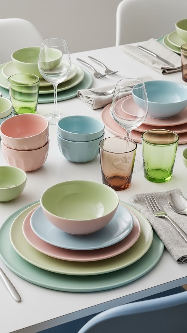 Pastel-Colored Tableware for Inviting Dining