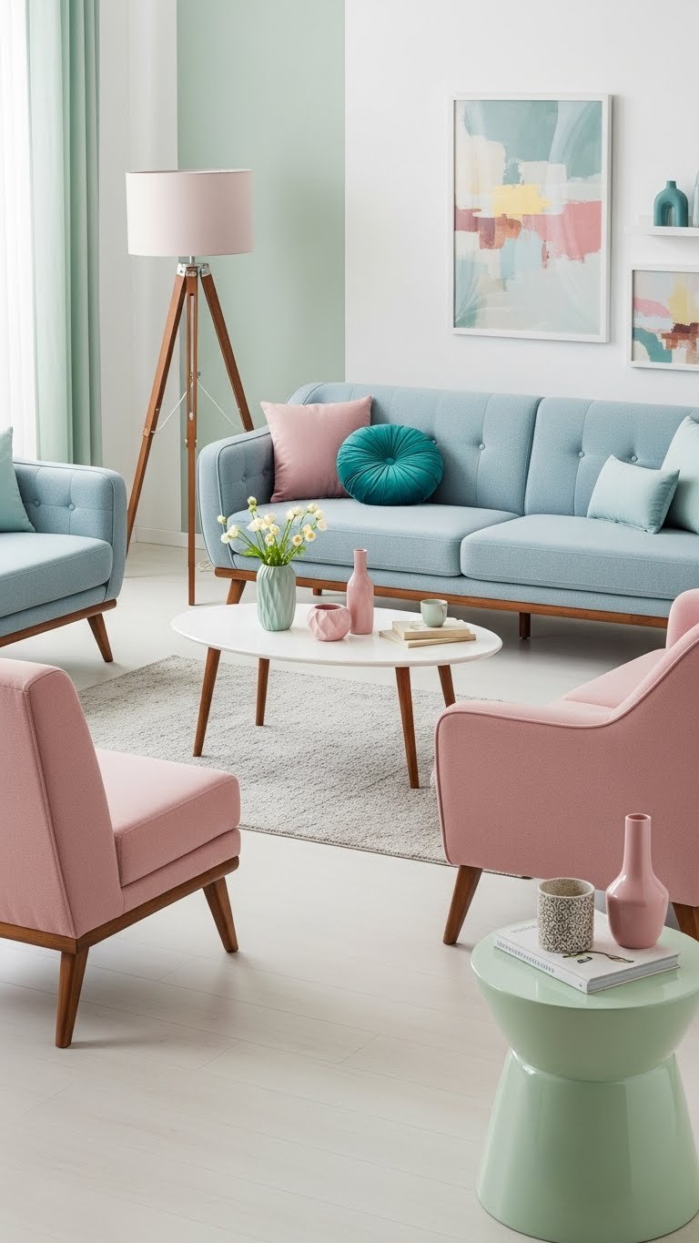 Soft-Hued Mid-Century Furniture for Gentle Elegance