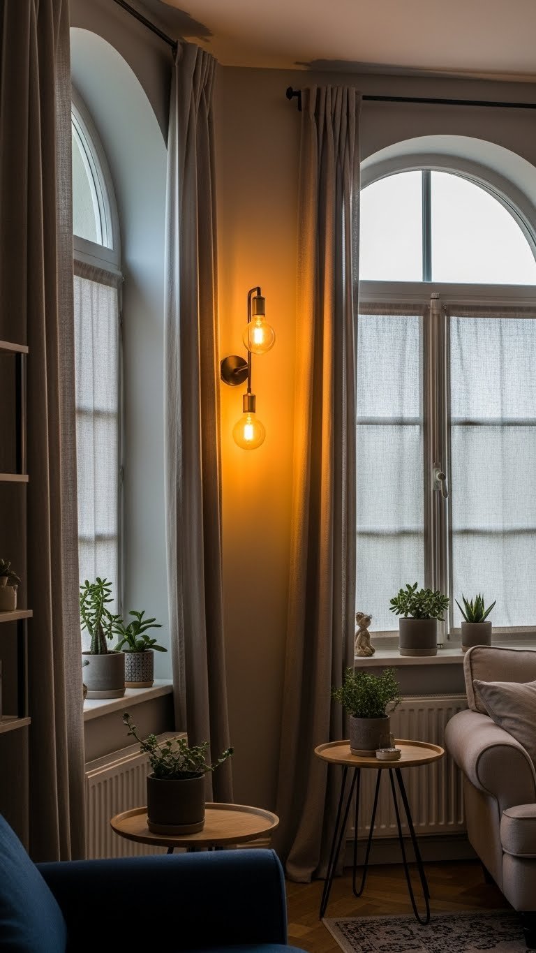 You can carry that soft, intimate mood from tabletop lights up onto the walls by using sconces that play up surface and shadow. Choose antique lanterns for character, pair with modern directional grazing to reveal plaster or brick, and plan sconce placement to frame art and cozy corners.