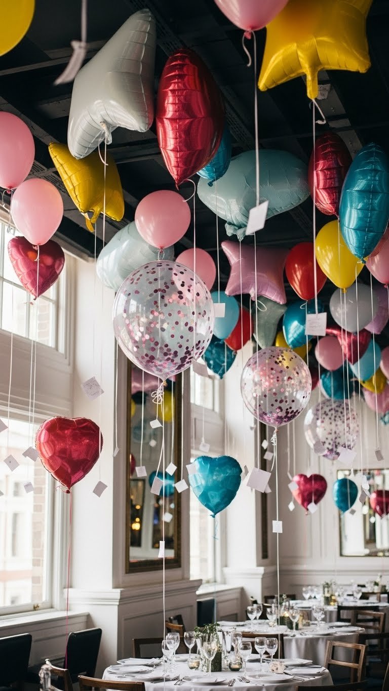 You’ll choose whimsical helium shapes and floating confetti-filled spheres, write tiny love notes on ribbons, and stagger heights for depth—creating an airy, liberated vibe that feels both modern and effortlessly romantic.