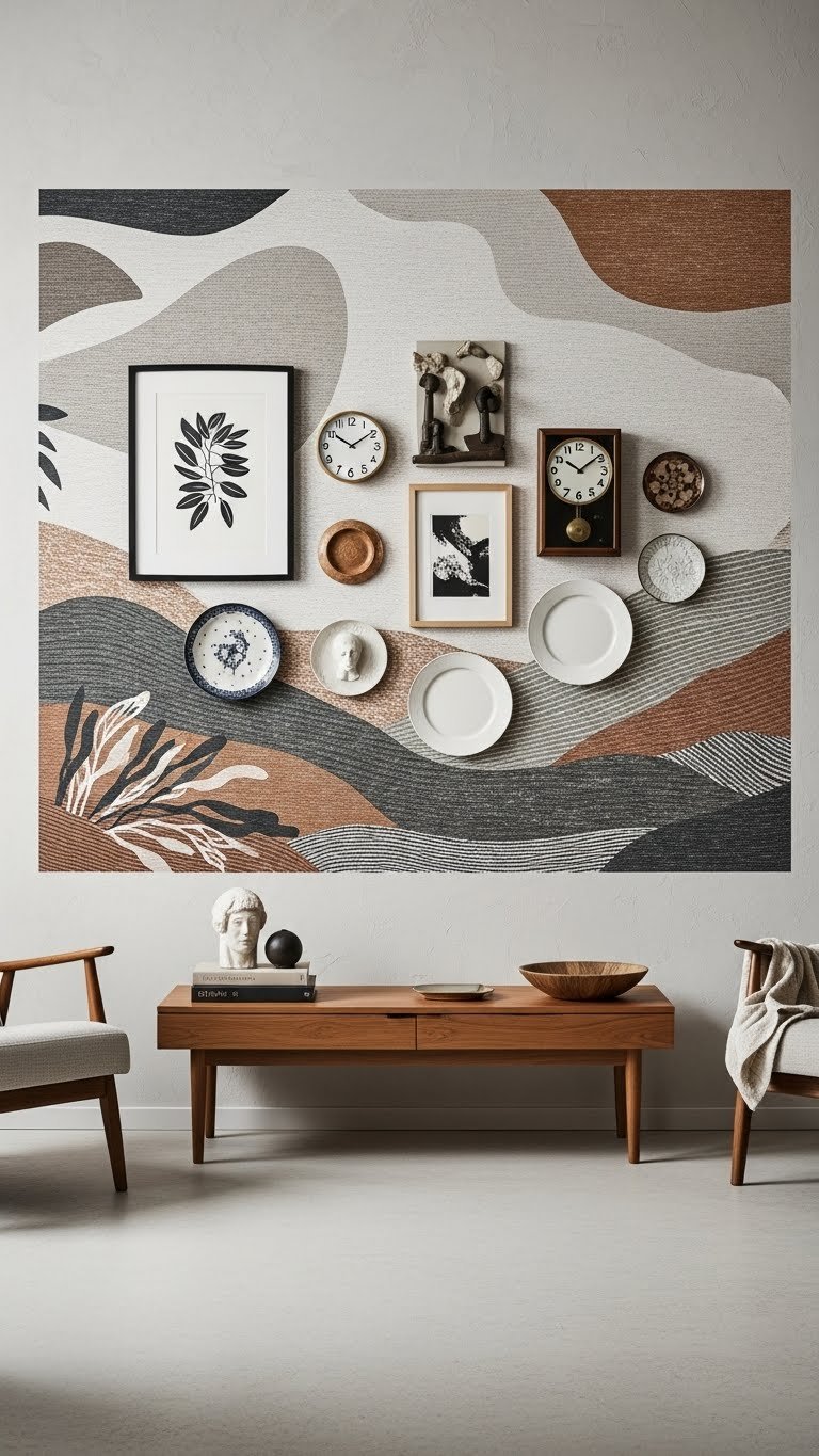 After you’ve built a collected wall, give the surrounding surfaces equal personality with textured wallpaper or decorative plaster that adds tactile depth and subtle drama.