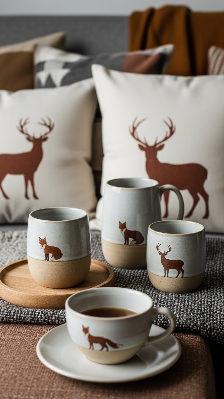 Pair those handmade ceramics with soft textiles that echo the same organic storytelling: woodland animal motif pillows and throws bring playful warmth without feeling kitschy.