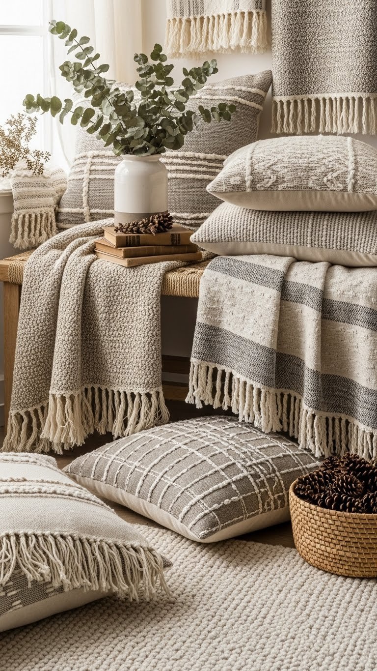 Arrange Cozy Textured Pillows and Throws