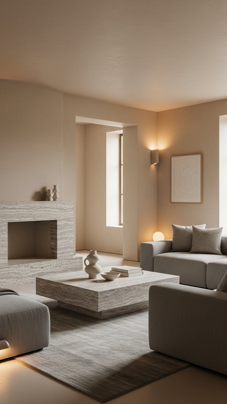 Honed stone’s muted warmth makes it easy to anchor the rest of your palette, so start building around warm beiges and soft greys that echo those undertones. Choose neutral textiles in varied weaves, low-contrast rugs, and matte paints to keep surfaces serene.