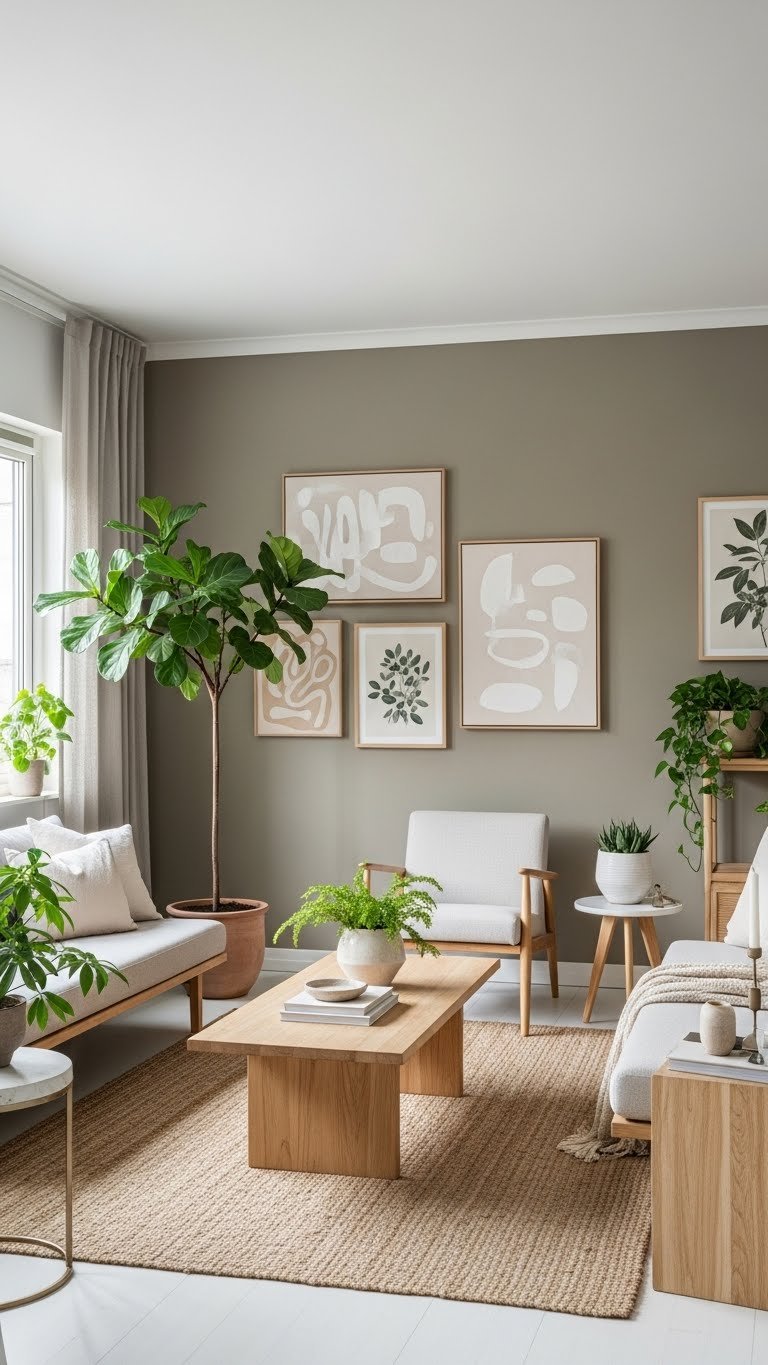 A muted earth-toned accent wall can quietly anchor a room and make other elements sing without stealing the show. Choose soft taupe for warmth or muted olive for subtle depth, then balance with pale neutrals and natural textures.