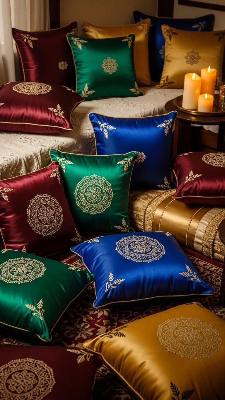 Use Satin and Embroidered Cushions