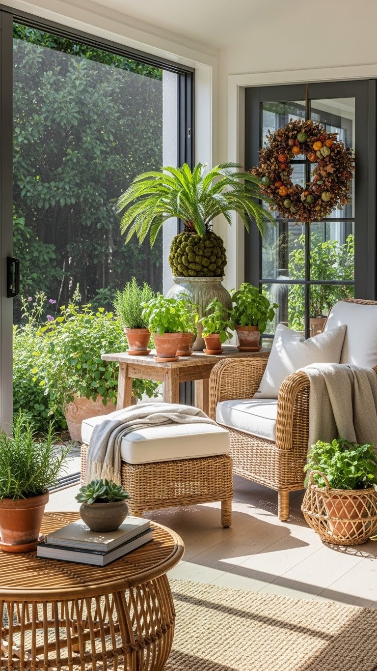 When you blur the line between inside and out, your home breathes with a softer, greener rhythm; mix potted herbs and sculptural palms with weathered wood and wicker to create a seamless, lived-in flow.