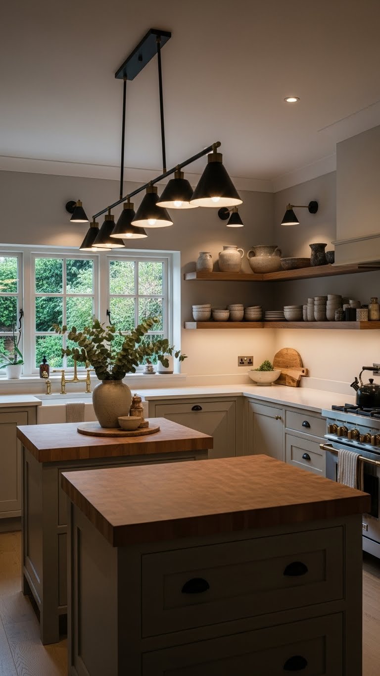 You’ll layer texture with butcher block islands, open shelving for ceramics, and matte brass fixtures. Add dimmer switches to soften light, creating a calm, liberated cooking space that feels effortlessly refined.