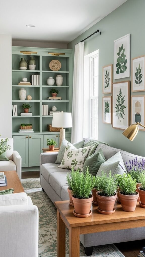 When you paint one wall in soft sage, the whole living room shifts from neutral to serene without overwhelming the space.