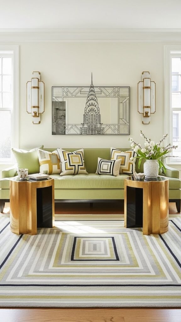 When you weave vintage-inspired Art Deco touches into a spring living room, they add geometric glamour without overpowering the airy, modern base.