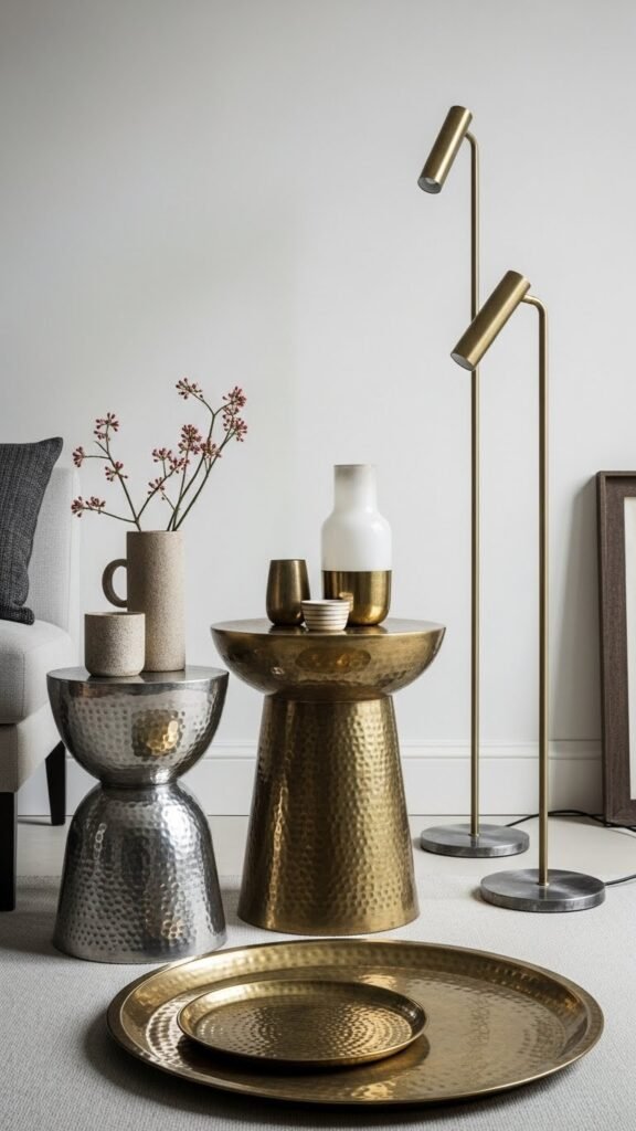 A few well-chosen recycled-metal pieces can give your spring living room an unexpected edge while cutting waste—think sculptural side tables, hammered trays, and slim floor lamps forged from reclaimed brass or aluminum.