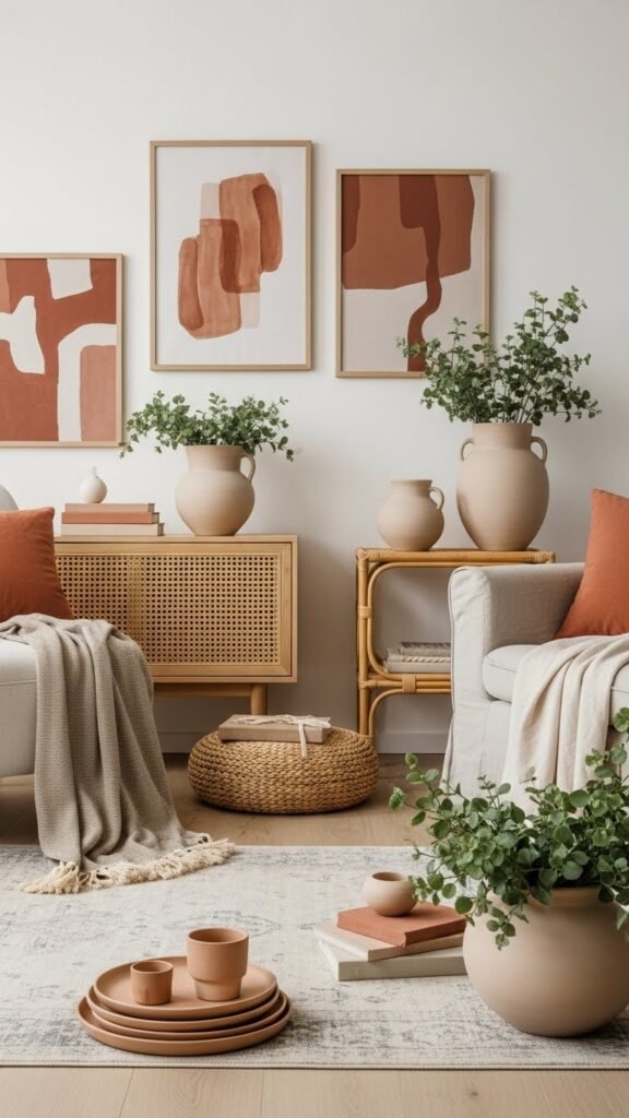 Choose simple, unglazed earthy ceramics and matte planters to add texture and calm. Mix in pale linens and rattan for contrast; the result feels liberated, refreshed, and effortlessly curated.