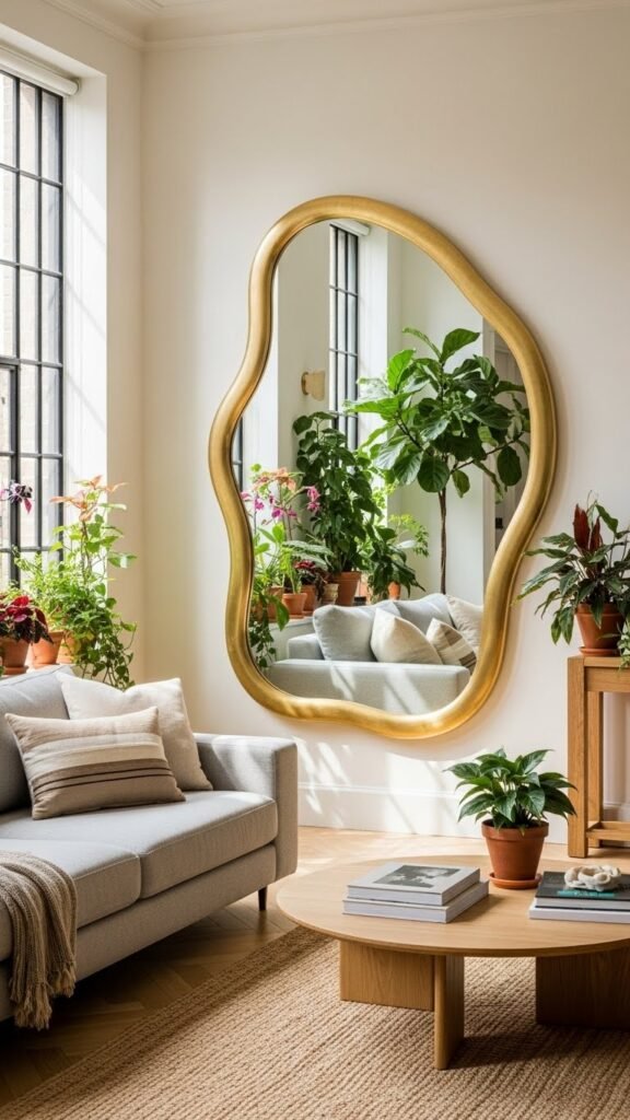 A statement sculptural mirror can instantly elevate your spring living room by doubling as art and function—its curved frame or unexpected silhouette catches light, reflects greenery, and creates a focal point without clutter. Choose an architectural mirrorplay piece that feels liberated, a reflective sculpture that expands space and personality.