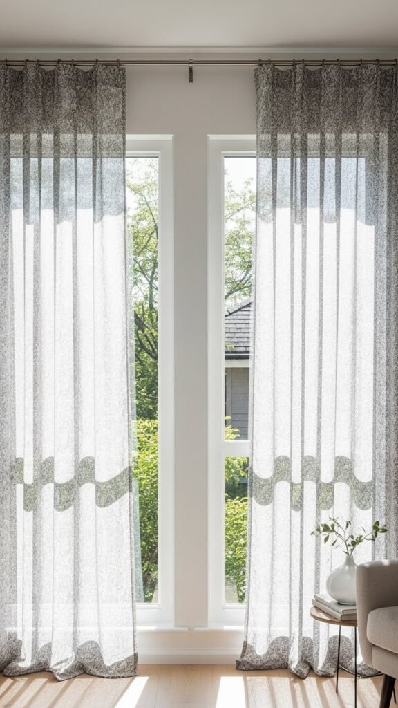 Swapping heavy textiles for lightweight linens sets the perfect stage for maximizing natural light with sheer window treatments. Let patterned sheers soften glare while preserving your view; they act as stylish privacy filters so you can relax freely without feeling boxed in.