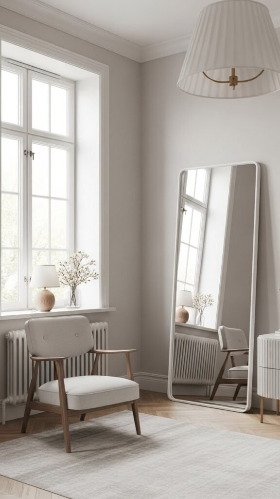 Hang a mirror directly across from a window to double the light and visually expand your space — it’s one of the simplest tricks designers use to make a room feel brighter and larger. You’ll create an optical illusion of depth and freedom, using window doubling to amplify views and daylight. Choose a lean frame, hang at eye level, and enjoy the airy, uncluttered effect.