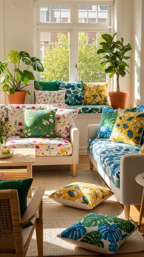 Embrace floral rotation to introduce playful motifs and scale contrast; a botanical swap brings verdant calm. You’ll mix patterns confidently, keep balance, and enjoy a lighter, freer living space instantly.