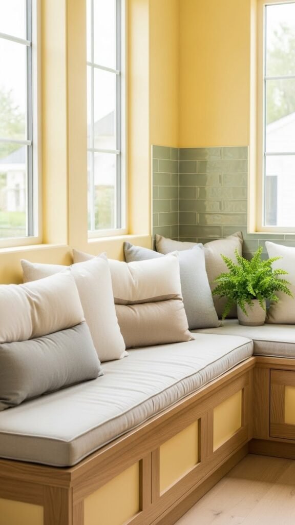 Buttery Yellow Breakfast Nook With Ashwood Moss Accents
