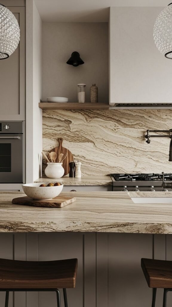 Tactility matters—choose stone countertops with organic edge details to give your kitchen or bath a grounded, sculptural feel that still reads effortless. You’ll appreciate honed seams that whisper restraint and durability, honed seams that align with minimalist freedom.