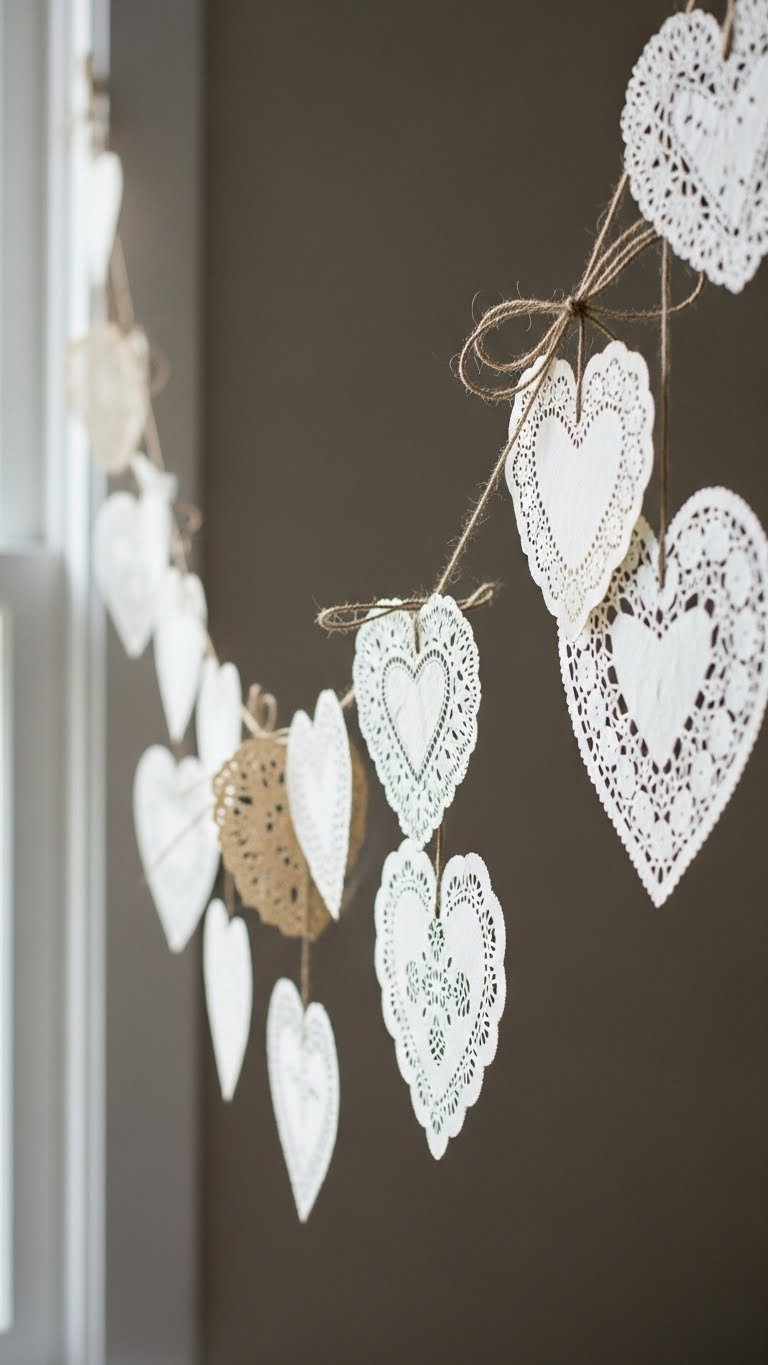 With scissors and a stack of vintage doilies, you can craft an airy heart garland that reads handmade-chic without feeling quaint.