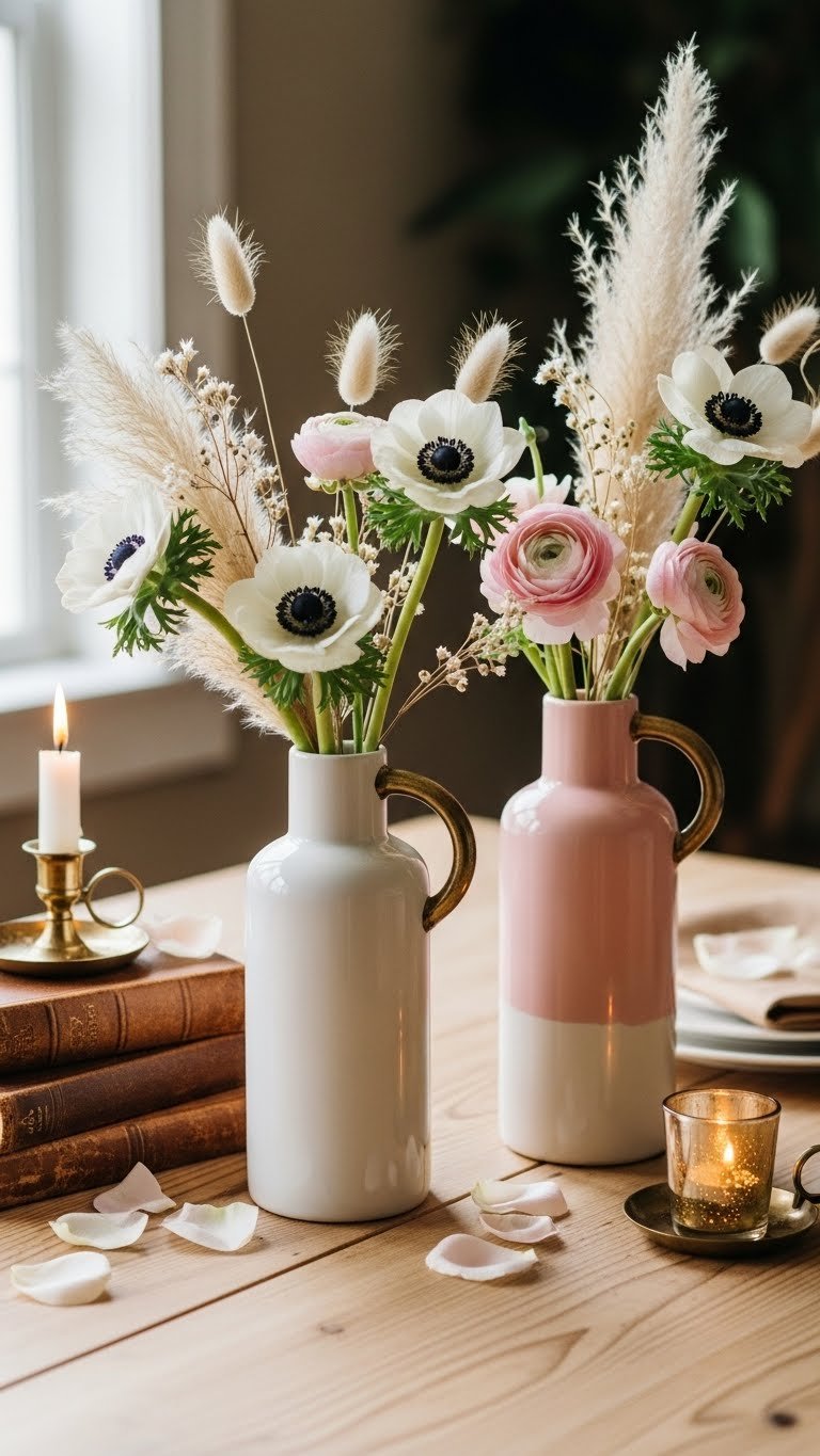 Keep that handmade-chic vibe but bring it down to tabletop scale with mini rose bouquets that feel curated rather than contrived.
