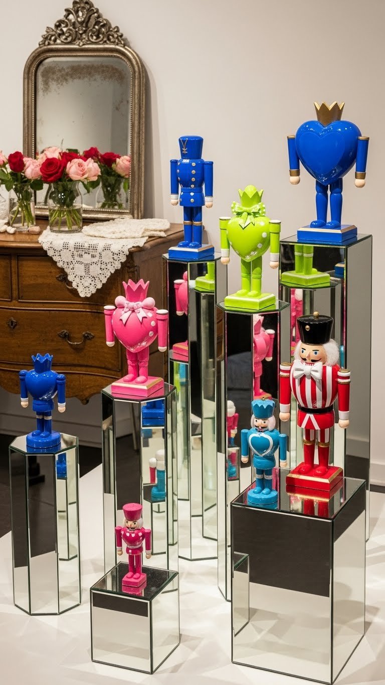 Bring out a playful twist on a classic by arranging heart-shaped nutcrackers as a chic Valentine’s focal—mix sizes, finishes, and a few unexpected colors to keep the display modern and museum-worthy.
