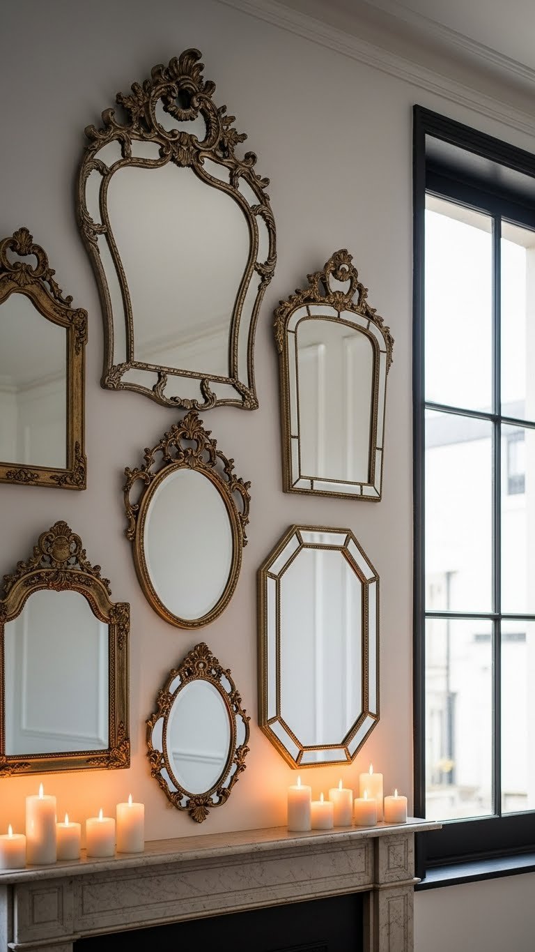 If your gallery wall sets the mood, ornate mirrors amplify it — bouncing light, enlarging space, and adding a touch of vintage glamour that feels both curated and effortless.