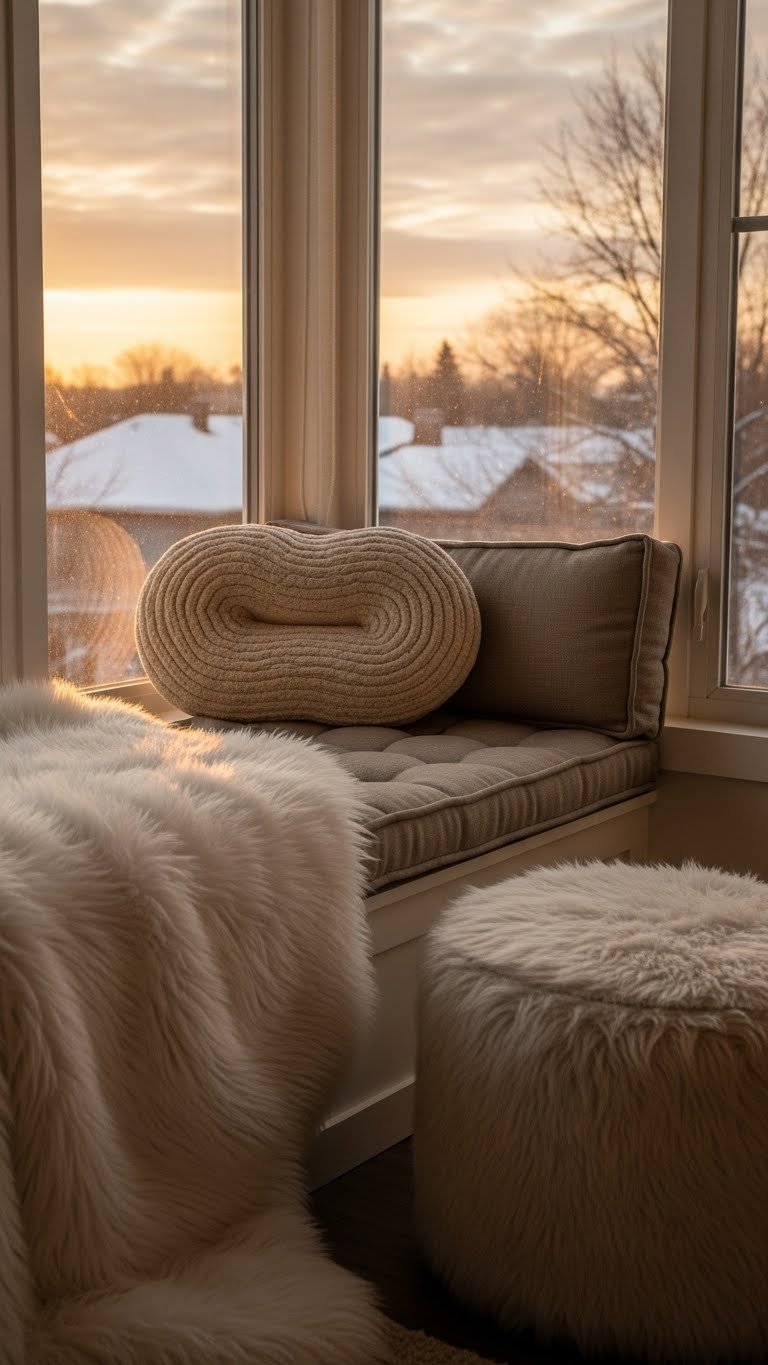 Tuck a faux fur throw across your window seat to instantly elevate comfort and visual appeal—its plush texture contrasts with the clean lines of the sill and invites you to linger with a book or a winter sunrise. Pair with a low faux fur ottoman for layered seating, choose neutral window cushion tufting to keep lines crisp, and add a single sculptural pillow for freedom-focused calm.