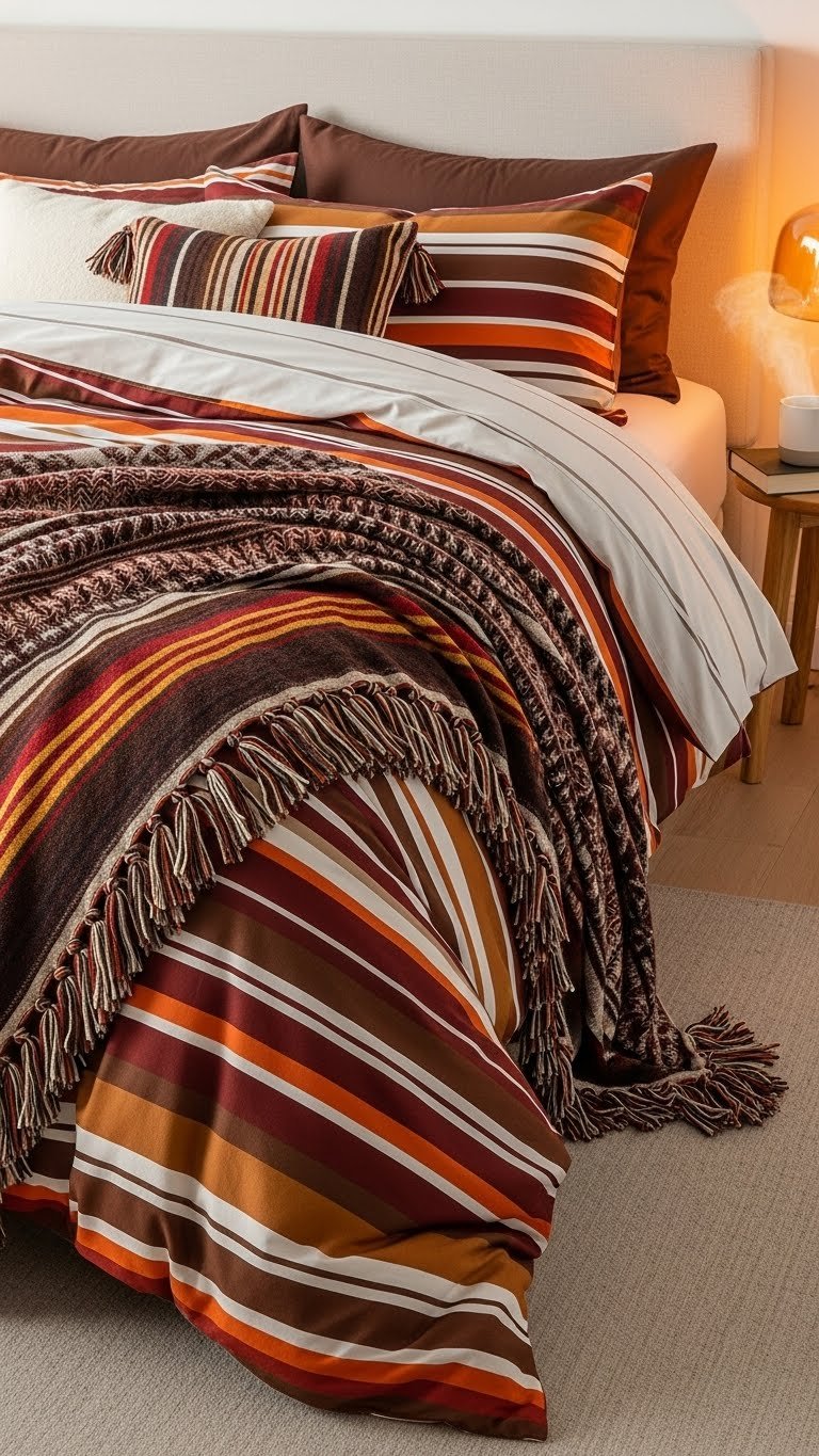 The same sense of tactile comfort you create with a plush throw can anchor your whole bedroom when you choose heavy bedding with bold stripes and tasseled edges. You’ll pick tassel quilts and a striped duvet to add structure and movement, pairing rich textures with clean lines.