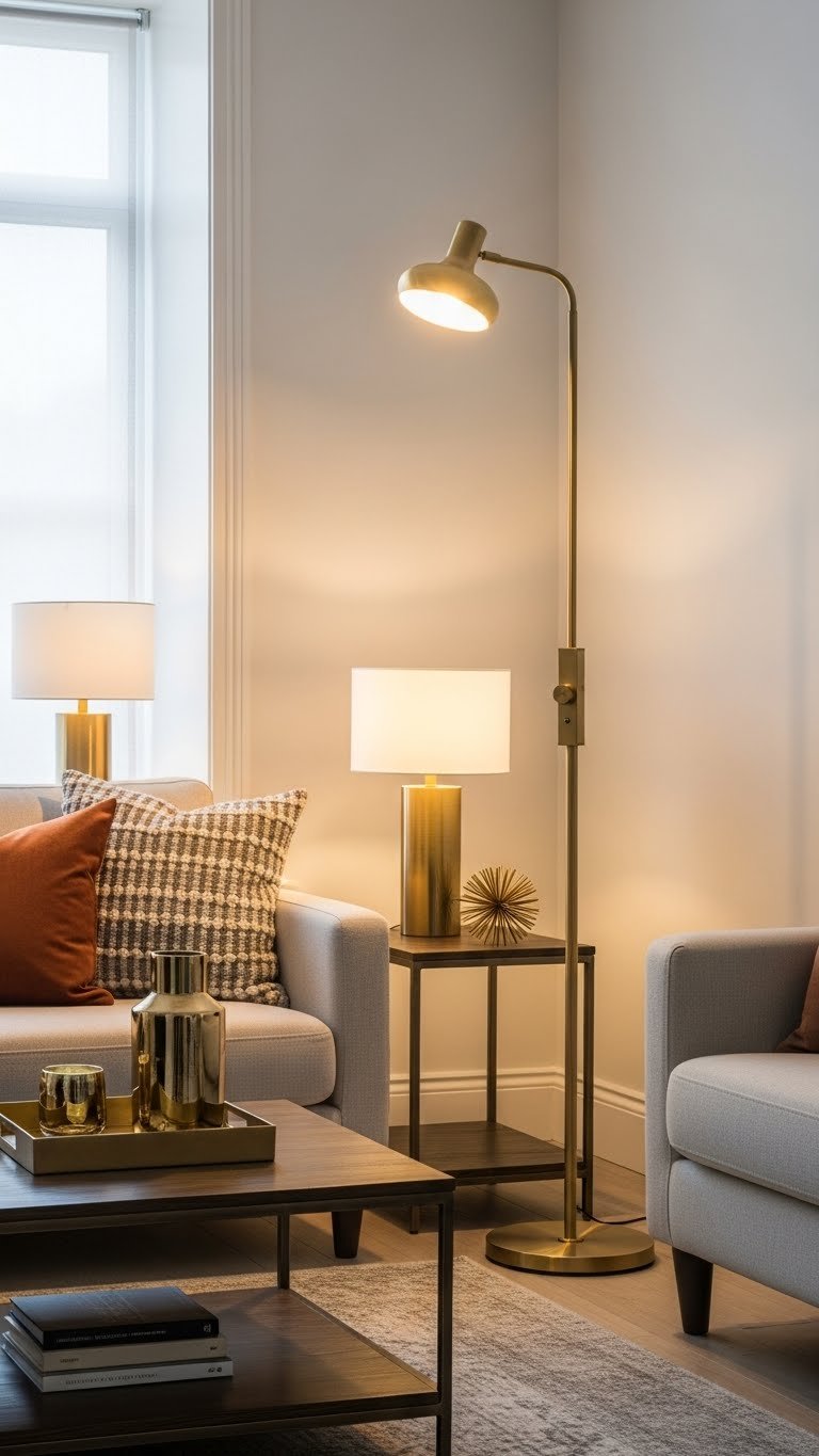 Install a Warm Metallic Floor Lamp