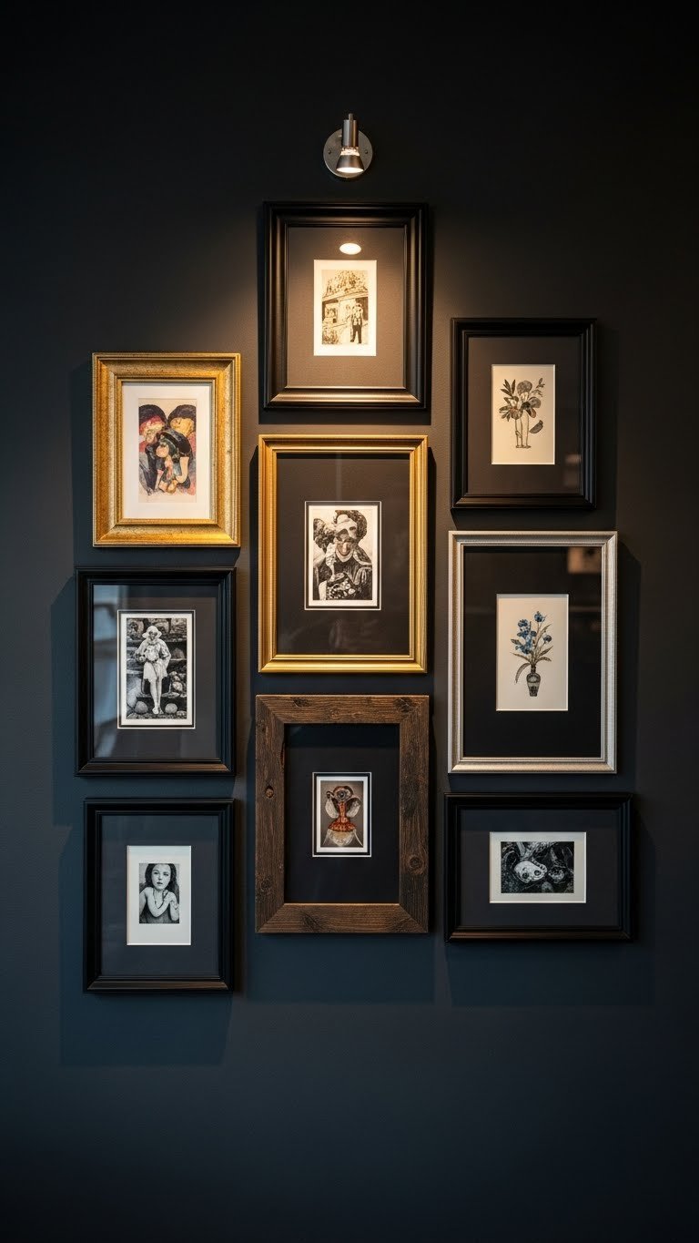 Choose mini artboards, varied frames and deep moody matting to amplify contrast. Arrange loosely, keep negative space intentional, and swap pieces seasonally. You’ll create a liberated, curated look that feels both modern and cozy.