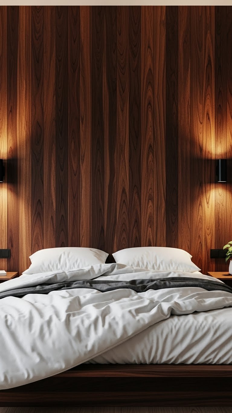 You’ll anchor the space with dark paneling that reads luxe without heaviness. Choose rich stains and reveal subtle timber textures to craft a calm, liberated retreat. Pair with minimal bedding and bold lighting to keep the look intentional and unfettered.