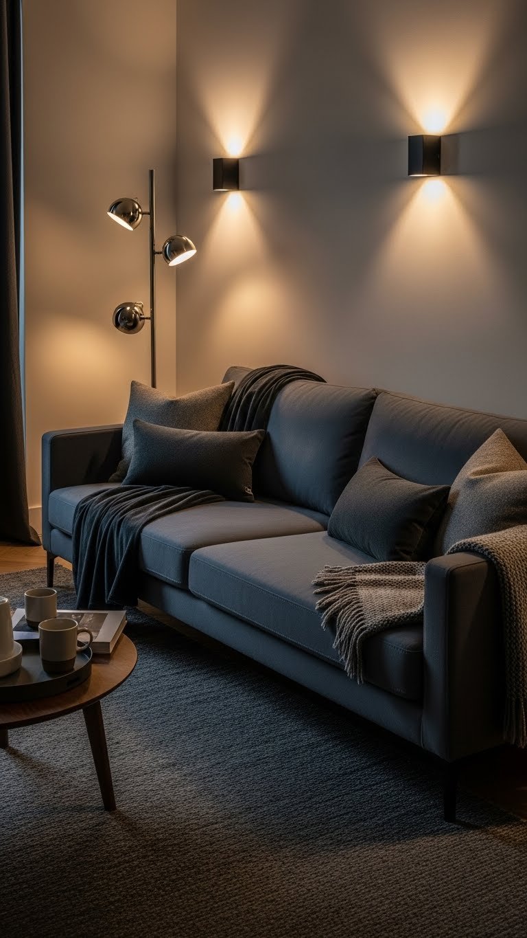 You’ll pair dusk textiles—velvet throws, matte wool pillows—with layered conversation lighting, sculptural floor lamps and dimmable sconces, creating an intimate, liberated space for relaxed dialogue.