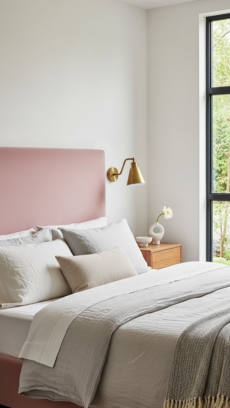 Transcendent Pink Velvet Headboard in a Serene Bedroom
