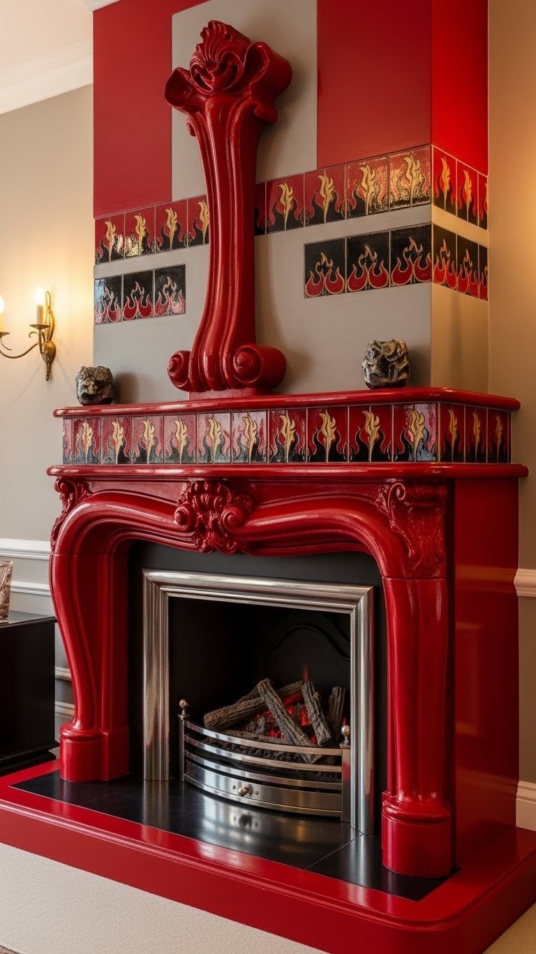 Turn your fireplace into a sculptural centerpiece by cladding the surround in a deep scarlet finish that reads luxurious rather than loud.