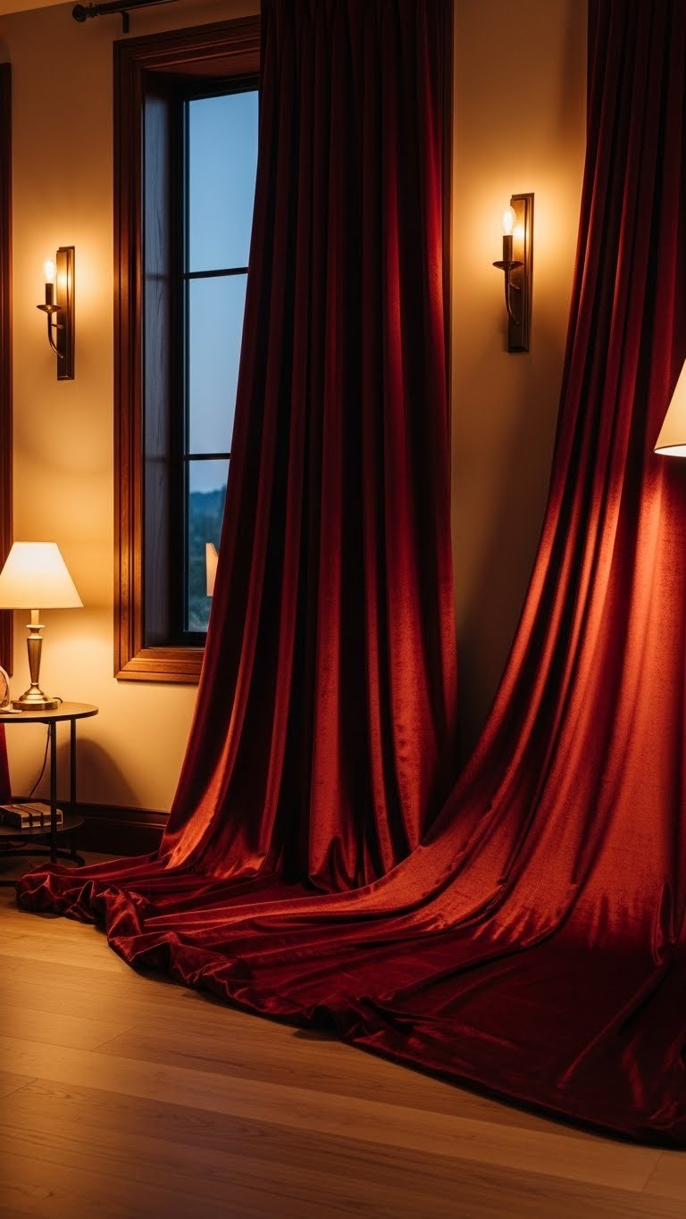 When you hang bordeaux velvet drapes, they cocoon a room in hushed luxury that’s both tactile and visual; the plush pile absorbs sound, deepens color, and frames views without shouting.