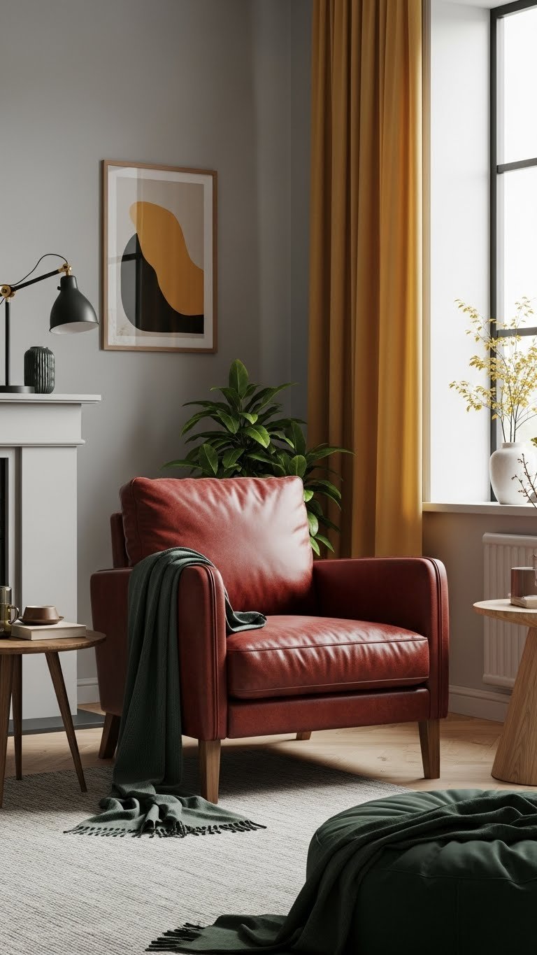 Slip a burgundy leather armchair into your scheme and watch it recast the room’s palette: its warm, tannic tones act like a flexible neutral, grounding cool grays or pairing elegantly with ochres and forest greens.