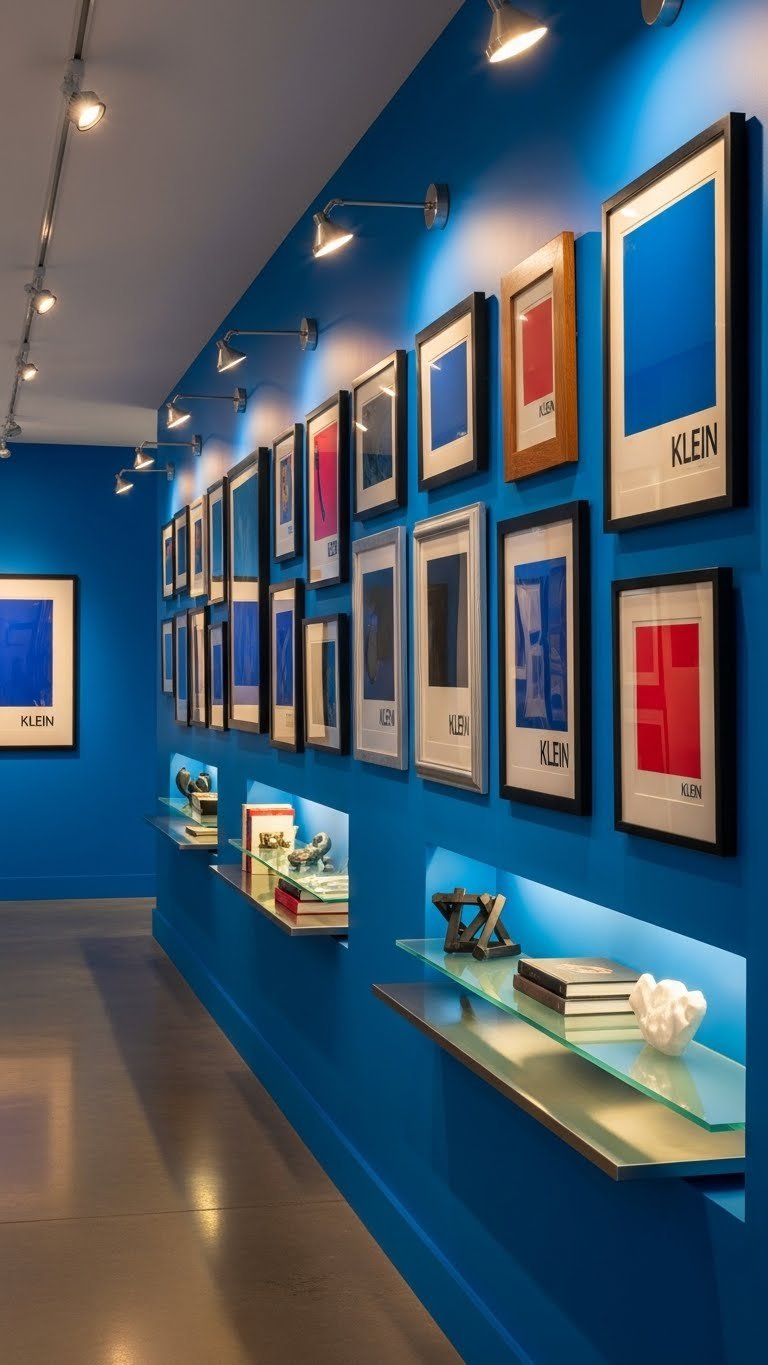 A single, saturated sweep of Klein blue can electrify a narrow corridor, turning a shifting zone into a focused gallery that feels both bold and curated.